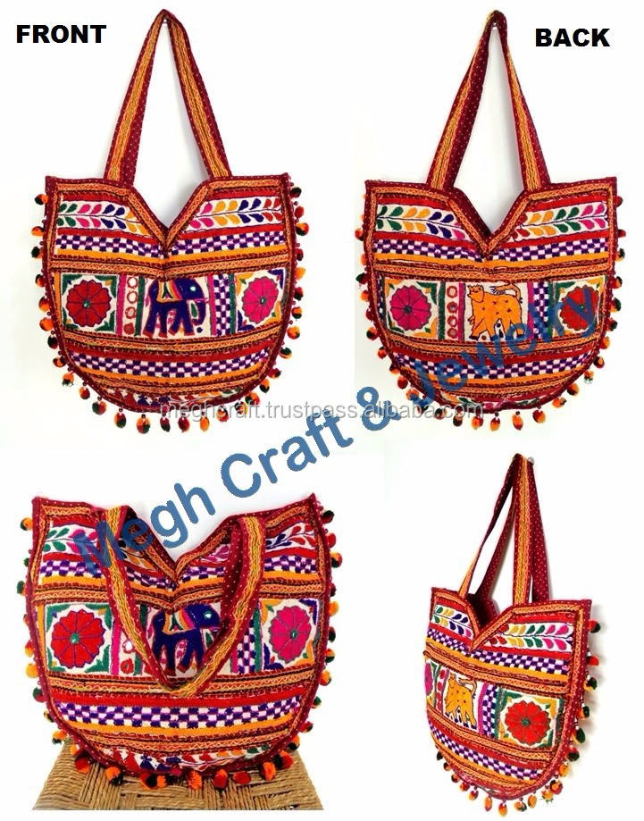 Gypsy Designer Ethnic Banjara Beaded Tote Bags Vintage Tribal Handbags for Weddings Indian Traditional Elephant Cotton Fabric