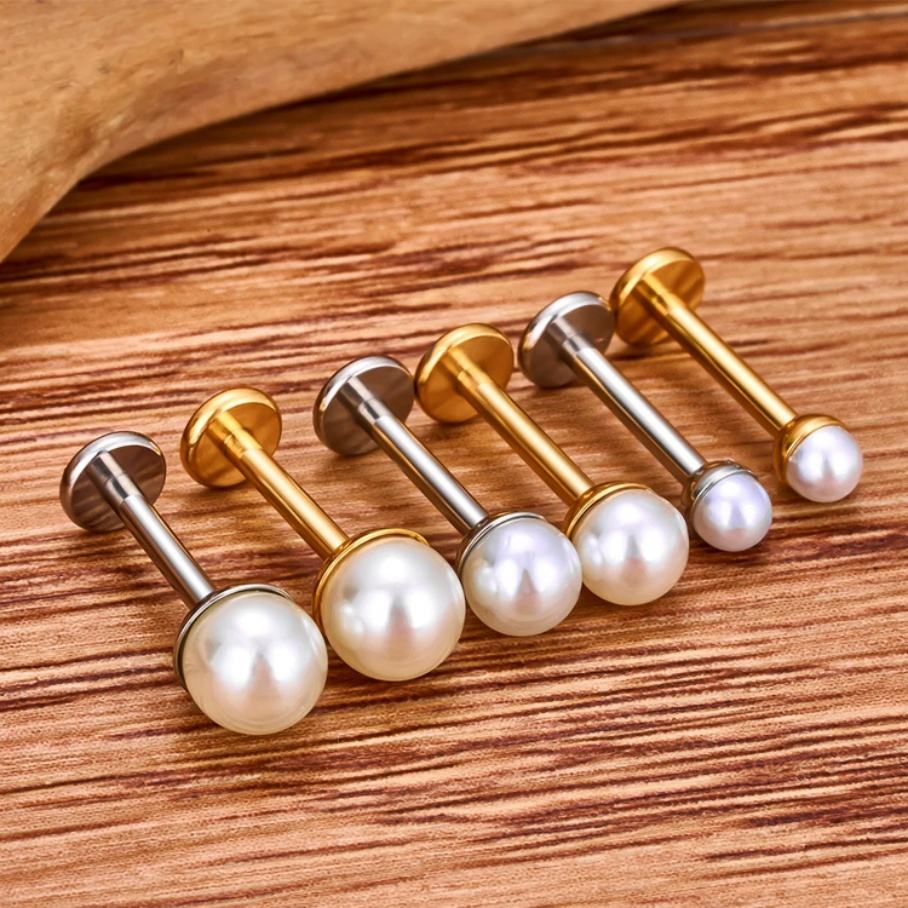 Gaby ASTM-F136 Titanium Gold Plated 16G Internally Threaded Ball Shape Pearl Inlaid Nose Stud Ear Cartilage Helix Piercing Gift