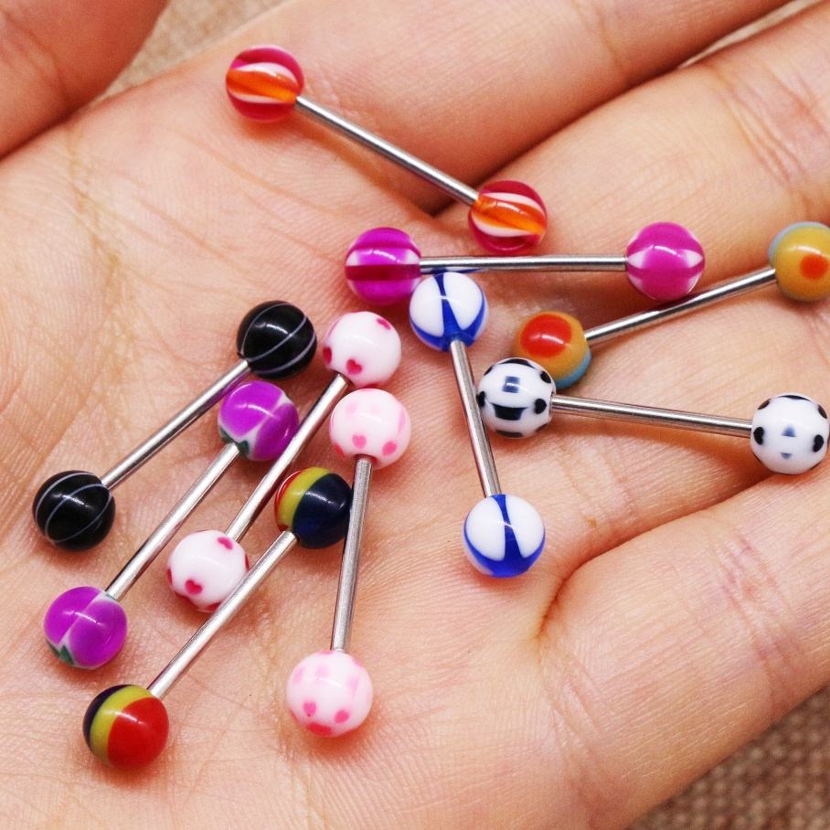 Gaby Acrylic Mix Color Gold Plated Tongue Ring Barbell for Unisex Women Wedding Gift Trendy Body Piercing Jewelry