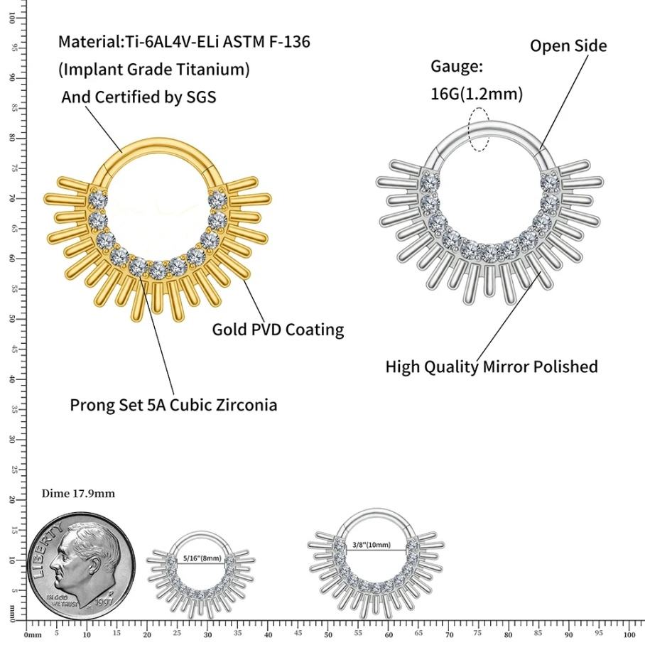 Gaby ASTM F136 D-Shaped Piercing Titanium 14K Gold Plated Zircon Wedding Unisex Nose Ring Horse Shoe Septum Piercing Jewelry