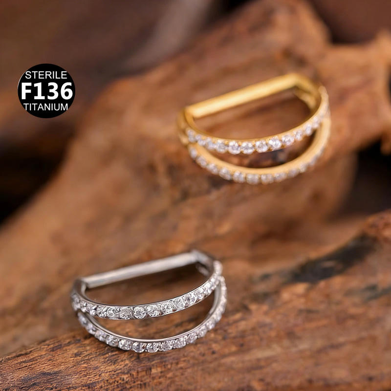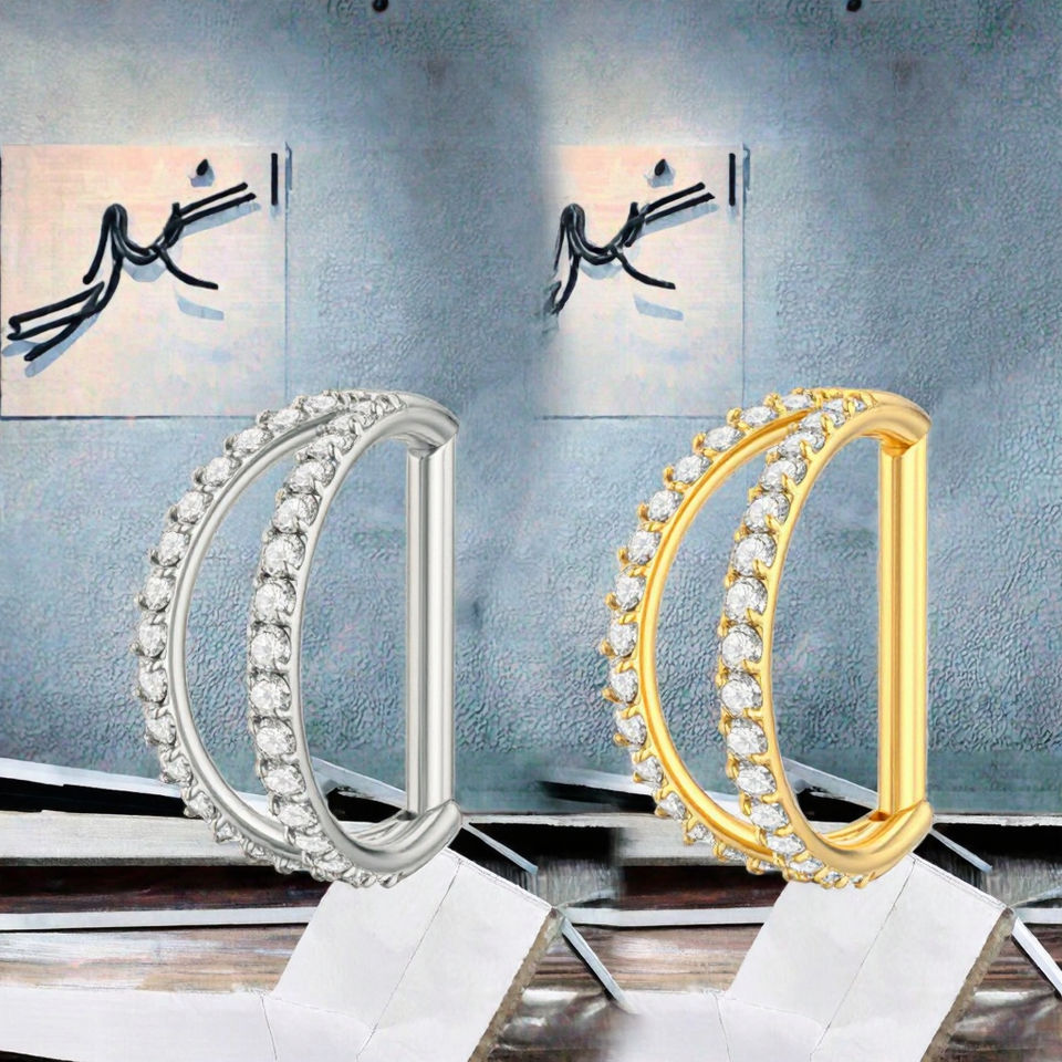Gaby F136 Titanium Gold Nose Ring D Shape Half Ring 16G Zircon Claw Setting Unisex Wedding Ear Tragus Cartialge Piercing Jewelry