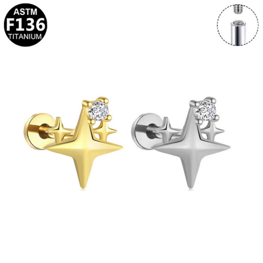 Gaby Hot Sale Stainless Steel Labret Piercing 16G Zircon Wedding Vintage Gold Plated Earring Piercing Jewelry