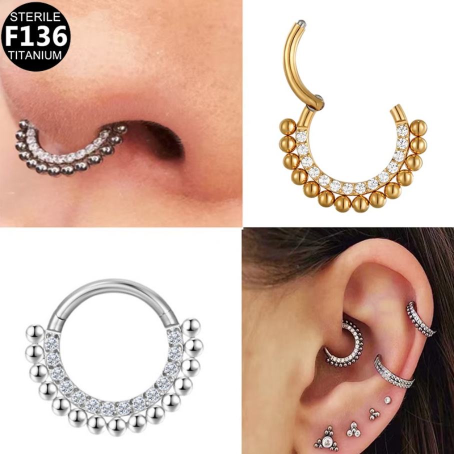 Gaby New ASTM F136 Titanium Nose Ring Cartilage Earrings Piercing Jewelry Daith Hoop Hinged Segment G23 Fashion Body Jewelry CZ
