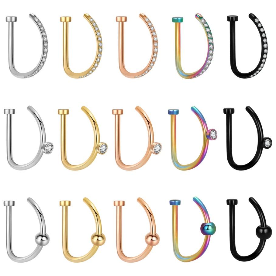 Gaby Vintage Micro-Inlaid Zircon Stainless Steel D-Shaped Nose Stud Non-Pierced Cuff Clip Nose Ring Hoop Earrings Wedding Gift