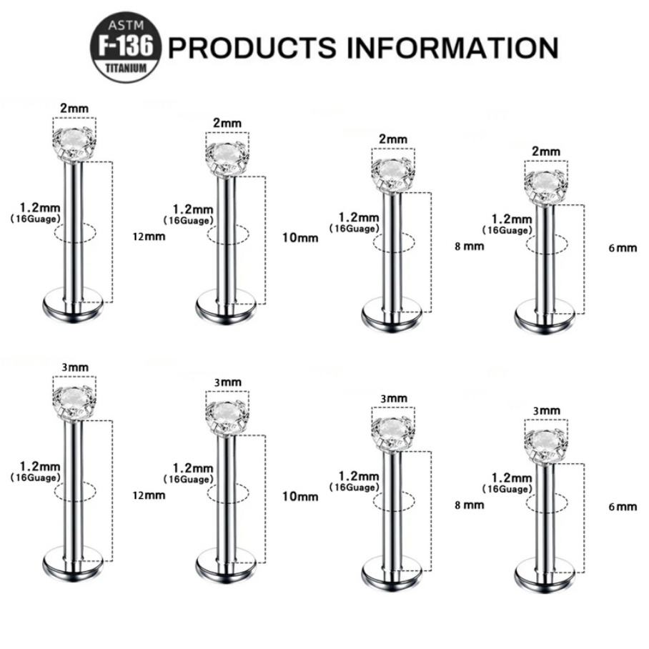 Gaby Wholesale 18G Titanium Vintage Labret Threadless Push Pin Piercing Stud 1.0*10mm Black Wedding Engagement Jewelry