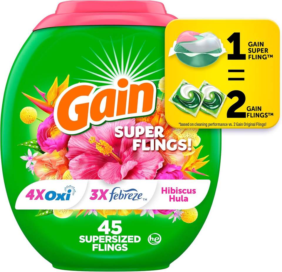 Gain flings Laundry Detergent Soap Pacs HE Compatible Long Lasting Scent, Original Scent, 76 Count