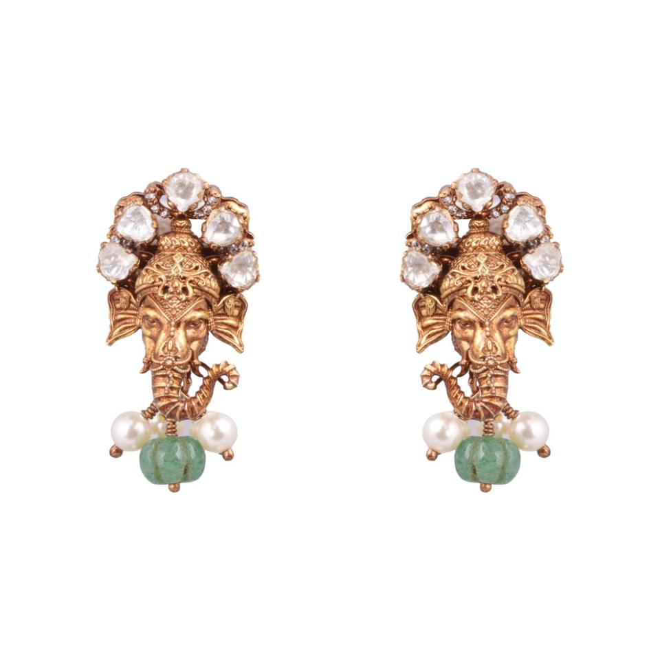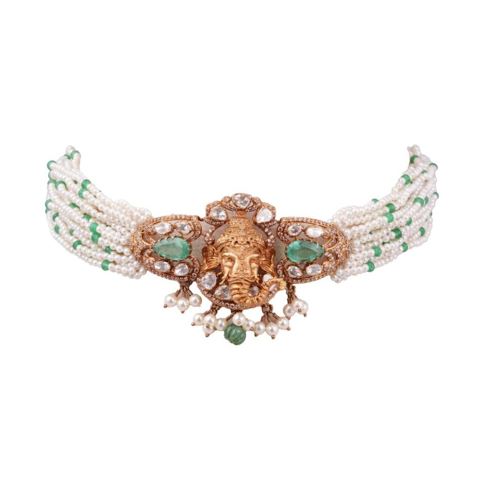 Gajaah 925 Silver Kundan Ganesh Necklace Handcrafted Gold Plated Ruby Enamel Pendant for Women Bridal Necklace Set Engagement