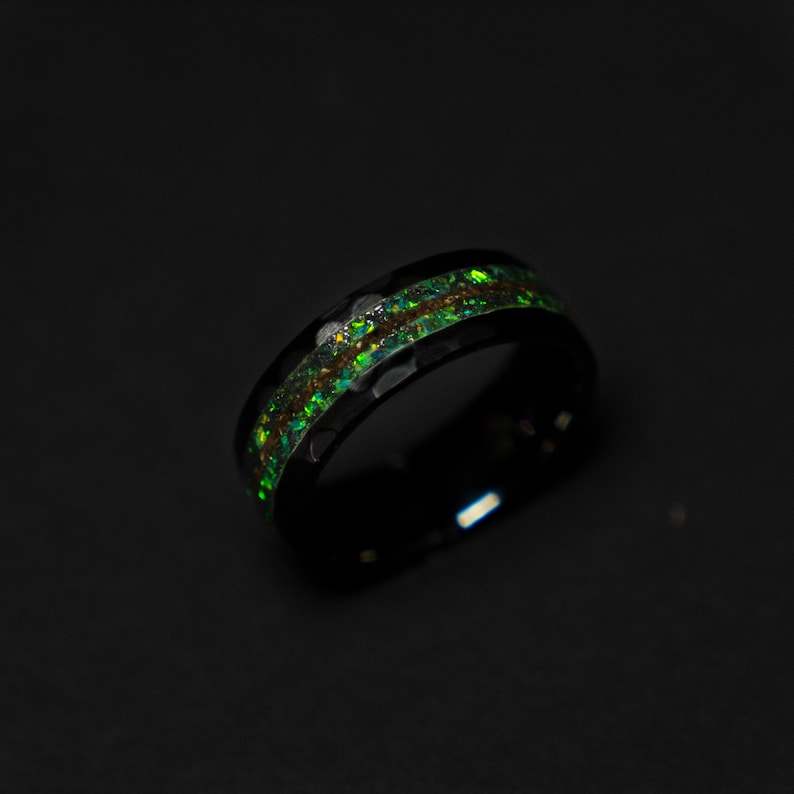 Keyword:Galaxy Green Fire Opal Band Ring With Dainty Design Shiny Glow