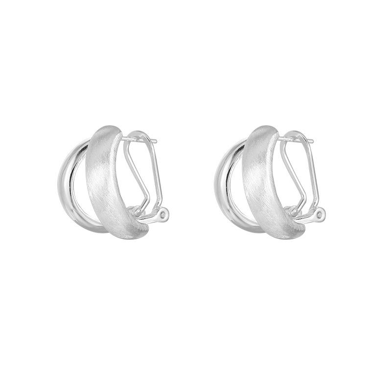 Galaxy Road S925 Sterling Silver Double-Layer Frosted Fine Stud Earrings for Women High-End Brushed Curved Design Light-weight