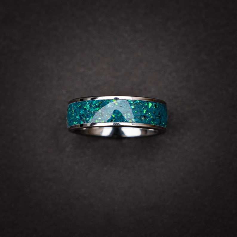 Keyword:Galaxy Space Blue Opal Band Ring Reflects Cosmic Energy Shimmering