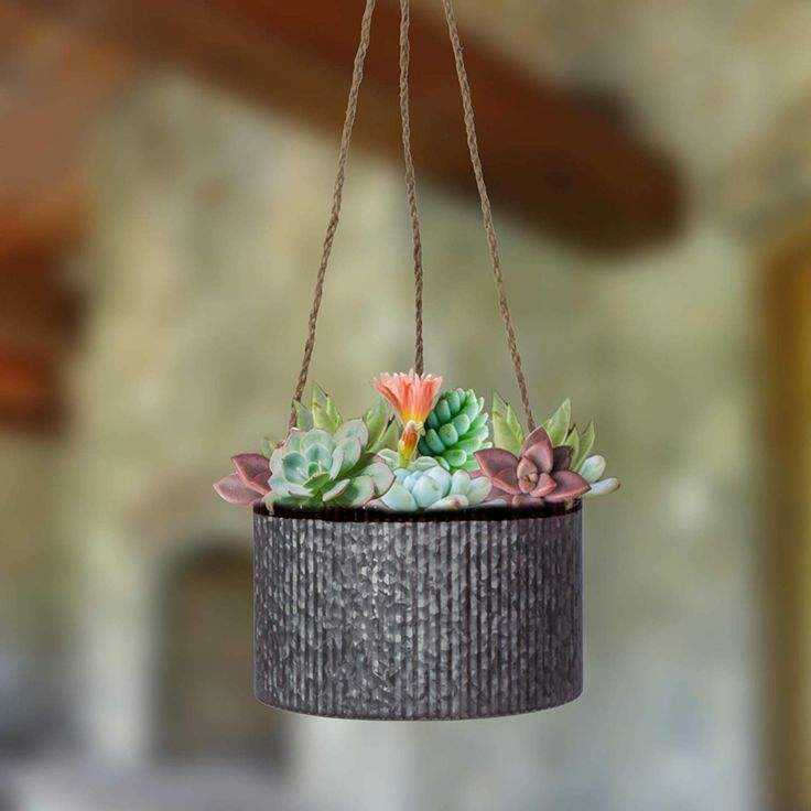 Galvanised Metal Hanging Planter for Indoor Outdoor Balcony Garden Use Durable Rustic Steel Flower Pot for Stylish Home
