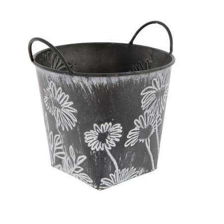 Galvanised planter arranged for flourishing leaf accents providing consistent rigidity through precision alloy pattern