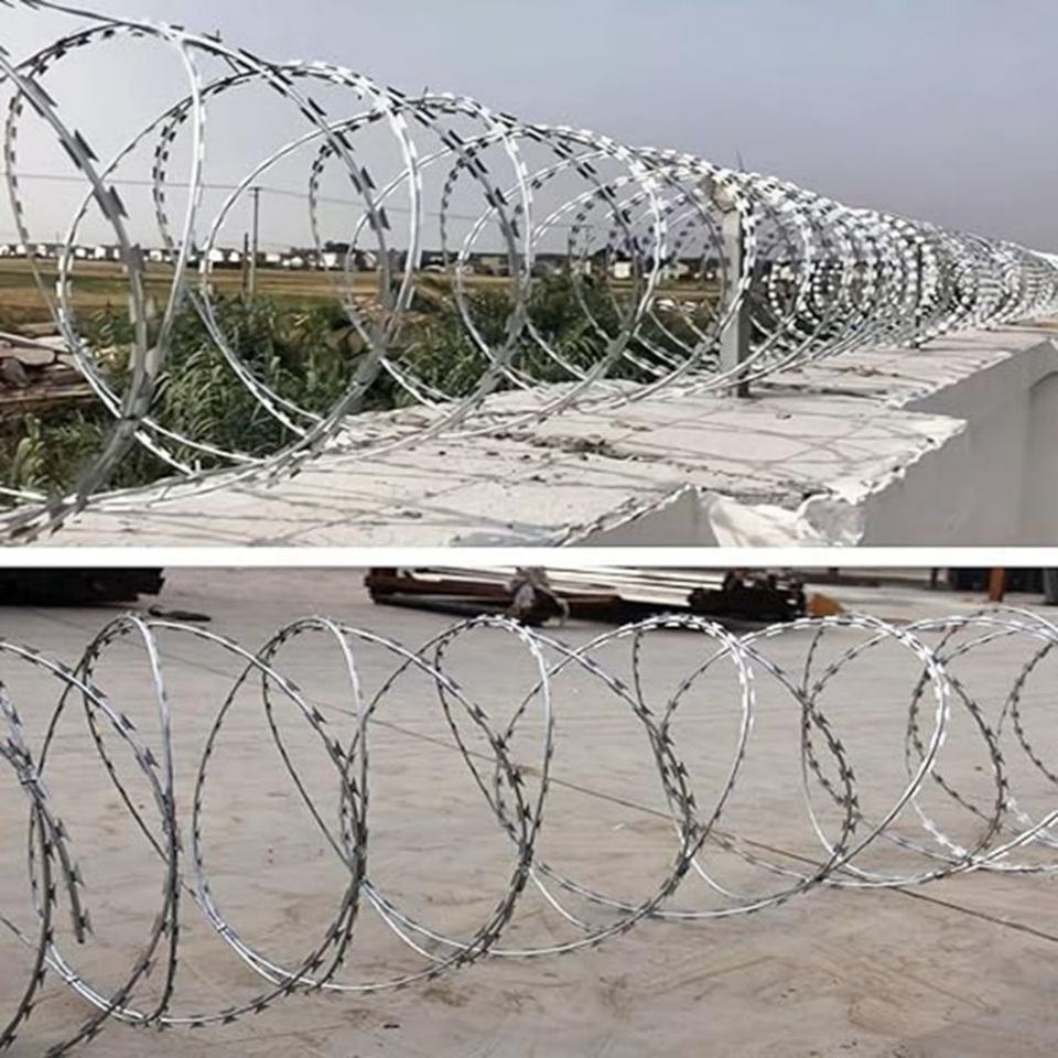 Galvanized Anti-corrosion Single Razor Iron Wire Mesh Barbed Wire Coil Concertina Wire for Protection