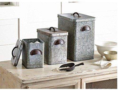 Galvanized Canister Set With Warm Farmhouse Aesthetics And High Functionality Designed To Fit In All Kitchen Layouts
