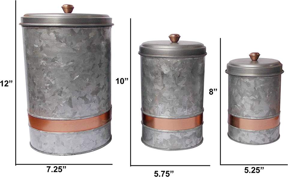 Galvanized Copper 140 oz Metal Storage Canisters Set of 3