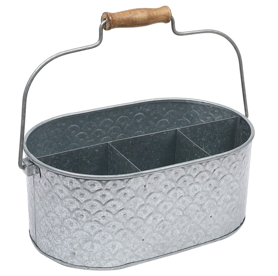 Galvanized Cutlery Holder Caddy Kitchen Utensil Holder Rustic Farmhouse Top Kitchen Accessories Galvanized Metal Picnic Caddy