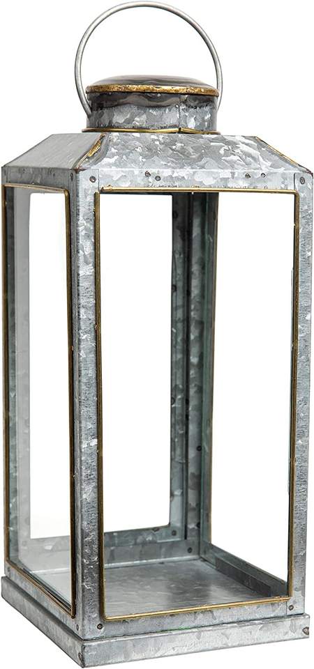 Galvanized Decorative Iron Lantern for Indoor and Outdoor for Home Decoration-Real Candles Hanging or Display