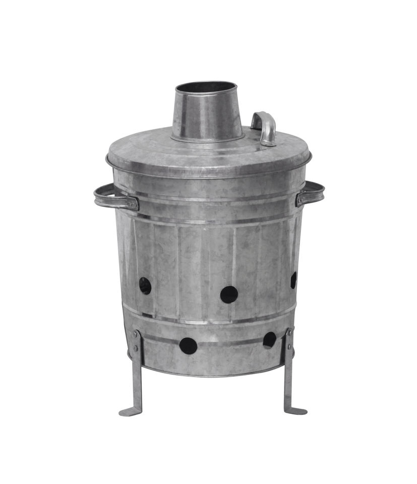 Galvanized Iron Garden Incinerator Bin with Chimney Lid and Air Vent Holes for Outdoor Waste Burning Large Incinerator