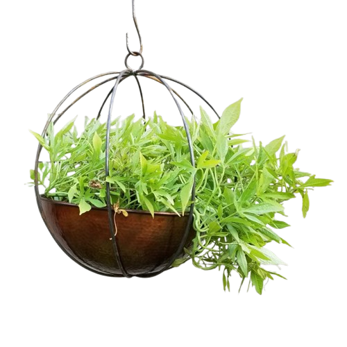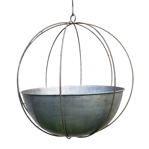 Galvanized Metal Ball Shape Wire Hanging Stand & Bowls Shape Metal Planter for Balcony Hanging Flowers Planter