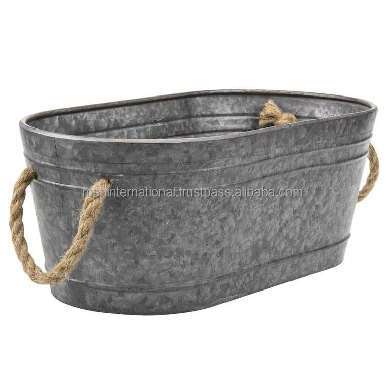 Galvanized Metal Beverage Bucket Ice Antique Metal Bucket Flower Planter Pot Galvanized Vintage Flower Pot for Export