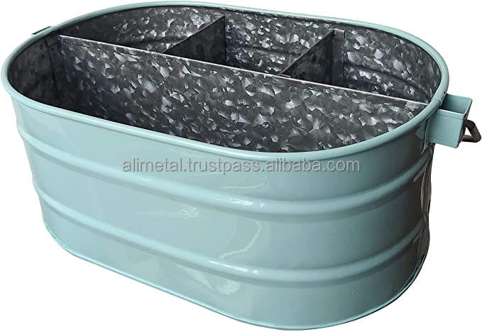 Galvanized Metal Caddy with Compartments Rustic Farmhouse Kitchen Picnic Utensil Holder Multipurpose Storage Customization