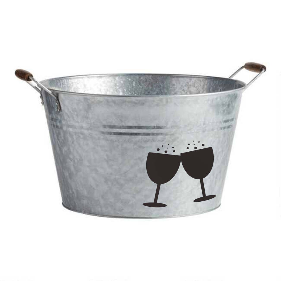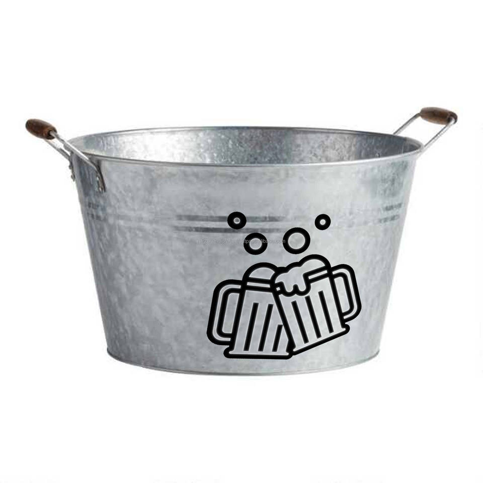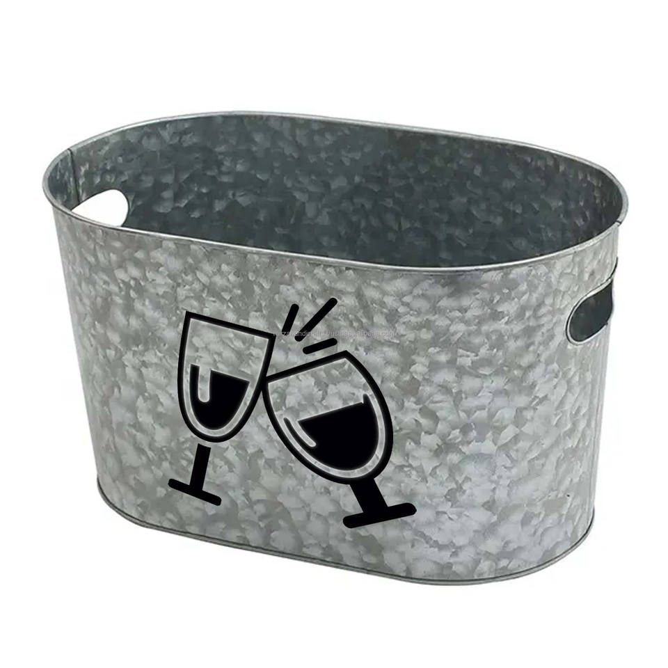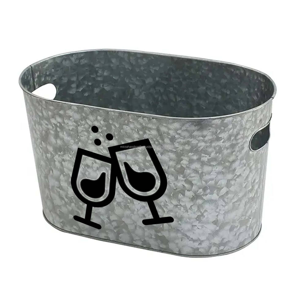 Galvanized Metal Ice Buckets with Customized Logo for Beer Drinking Food Storage Handmade Bucket Custom Rate