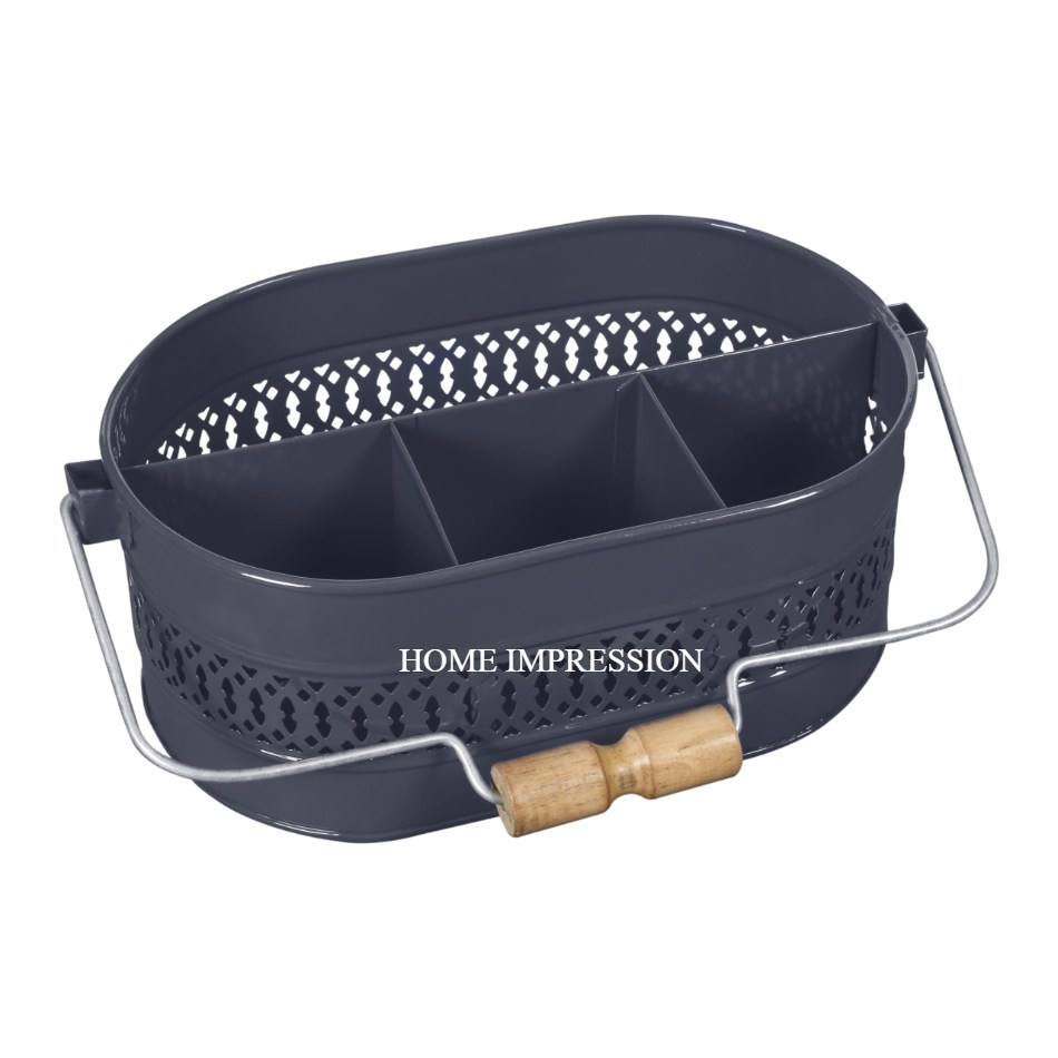Galvanized Metal Kitchen Utensil Caddy Metal Utensil Holder With Wooden Handle Metal Storage Holders Customized Color Coated