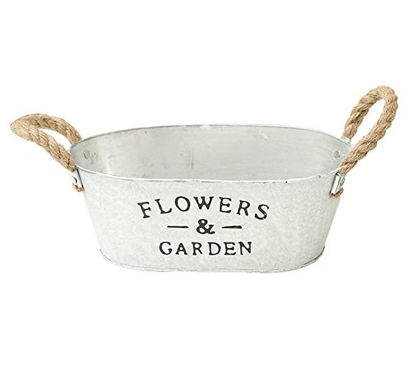 Galvanized Metal Outdoor Flower Pots & Planter With Rope Handles Rustic White Succulent Planter Box Iron Planter Container Box