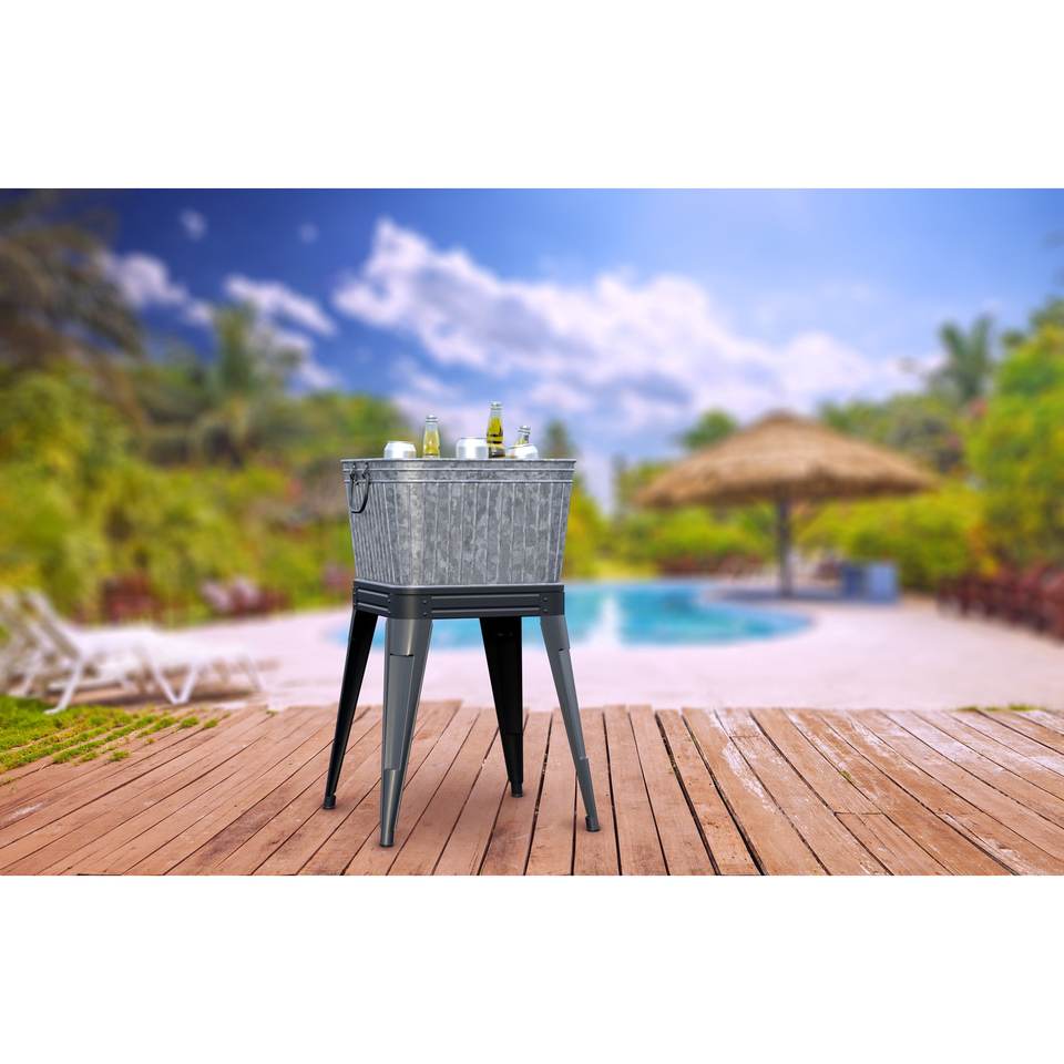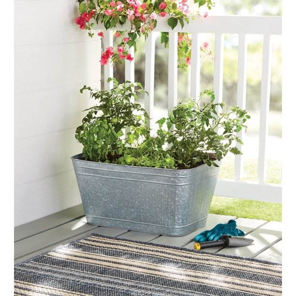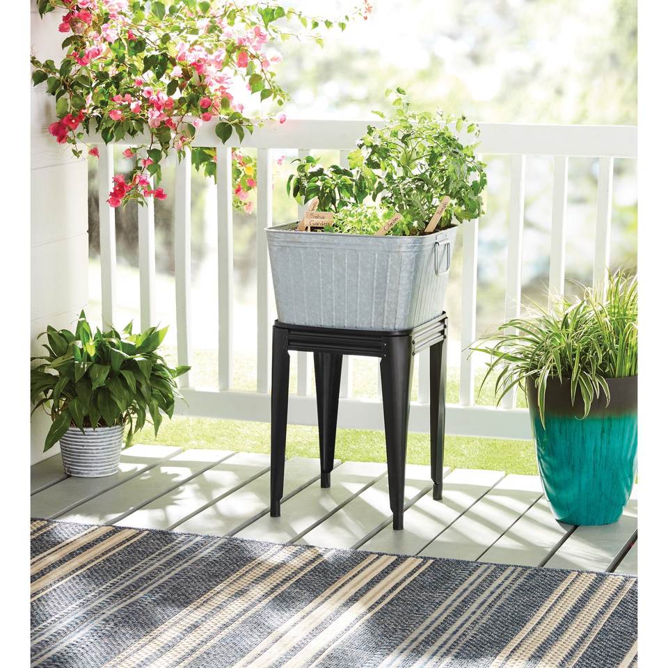 Galvanized Metal Silver Elevated Tub Planter for Garden Floor Decoration Decorative Bucket Outdoor Nordic Planter Flower Pots
