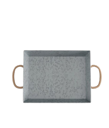 Galvanized Metal Tray Rope Handle Galvanized Finished Serving Tray Weddings Offices Decorative Plating Serving Tray