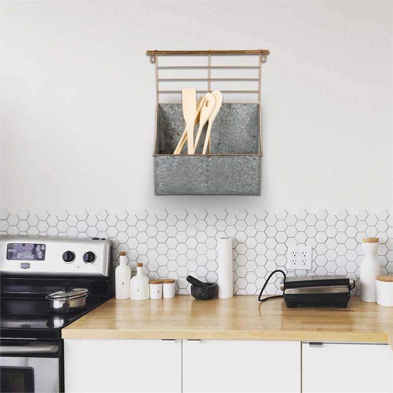 Galvanized Metal Wall Pocket with Sleek Silver Finished Perfect for Stylish Home Storage and Organization Solutions