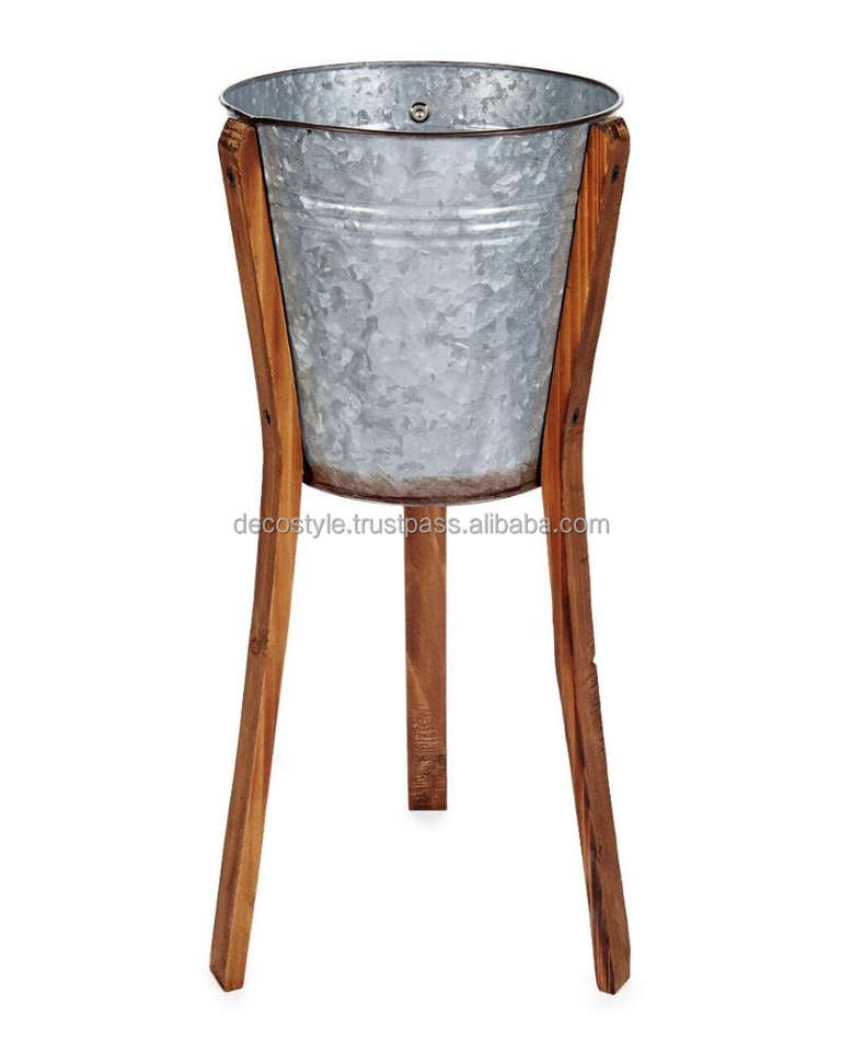 Galvanized Planter with Wooden Stand