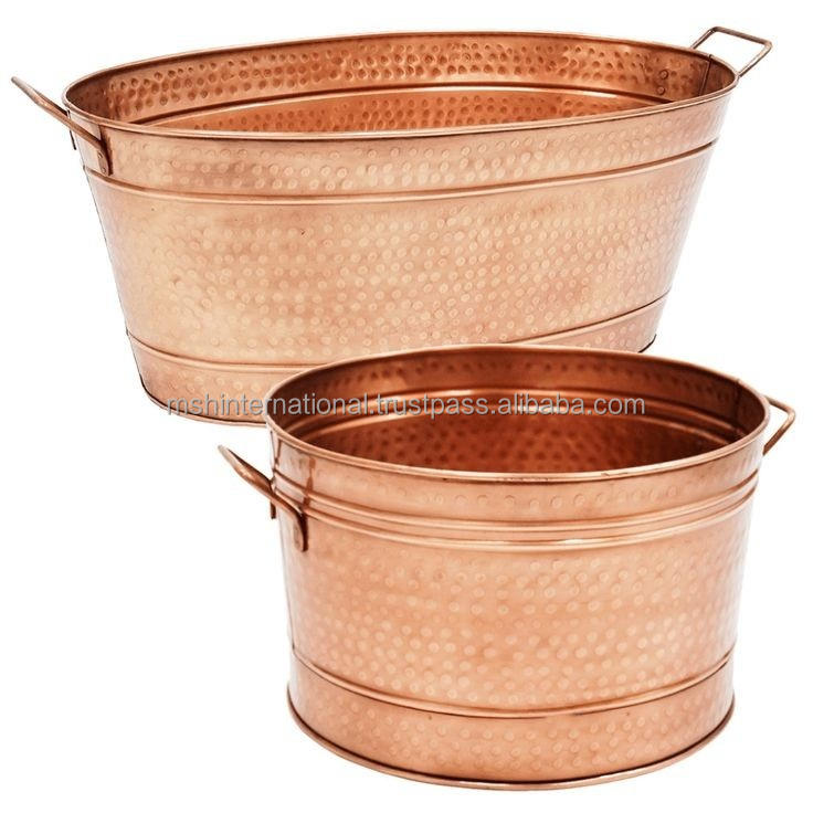 Galvanized Planters Flowers Decorative Round Garden Copper Metal Bucket Plant Pot Ice Bucket