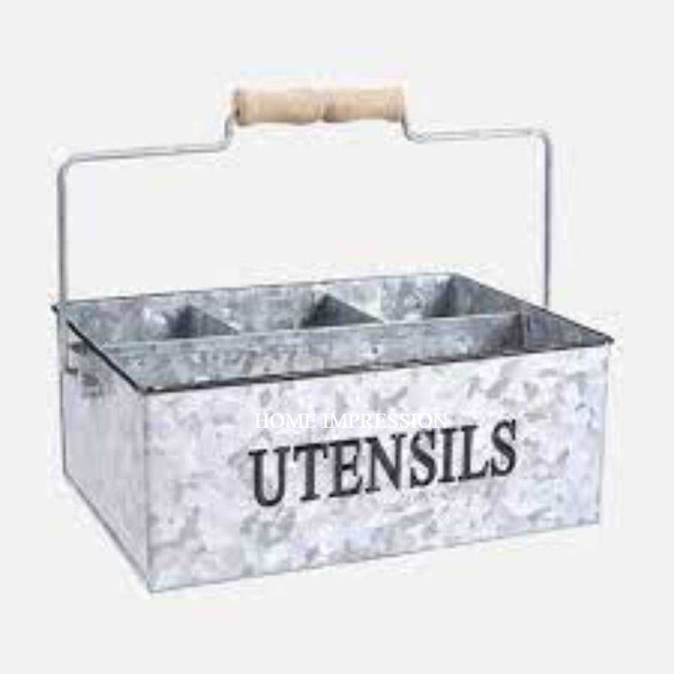 Galvanized Square Utensil Holder Customized Finished Designer Flatware Caddy Classic Stylish Fancy Utensil Holder Caddy Tool