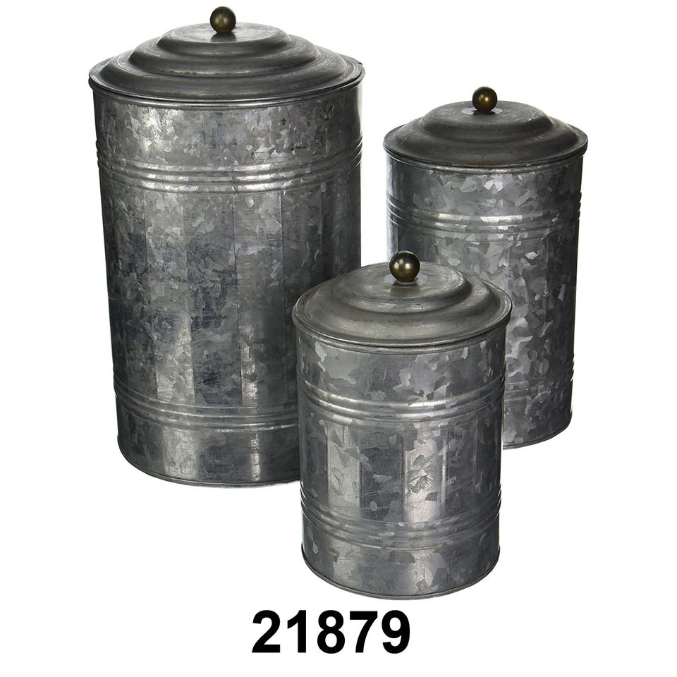 Galvanized Steel Kitchen Canister Set of 4 Coffee Flour Sugar Tea Metal Kitchen Storage Boxes for Home Decor
