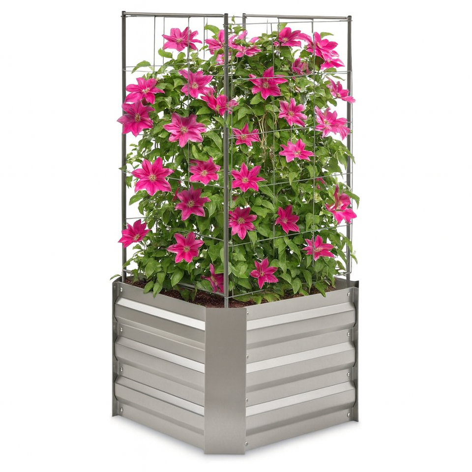 Galvanized Steel Raised Garden Planter Bed with Trellis Metal Planter Box with Trellis Garden Box for Climbing Plants Vegetable