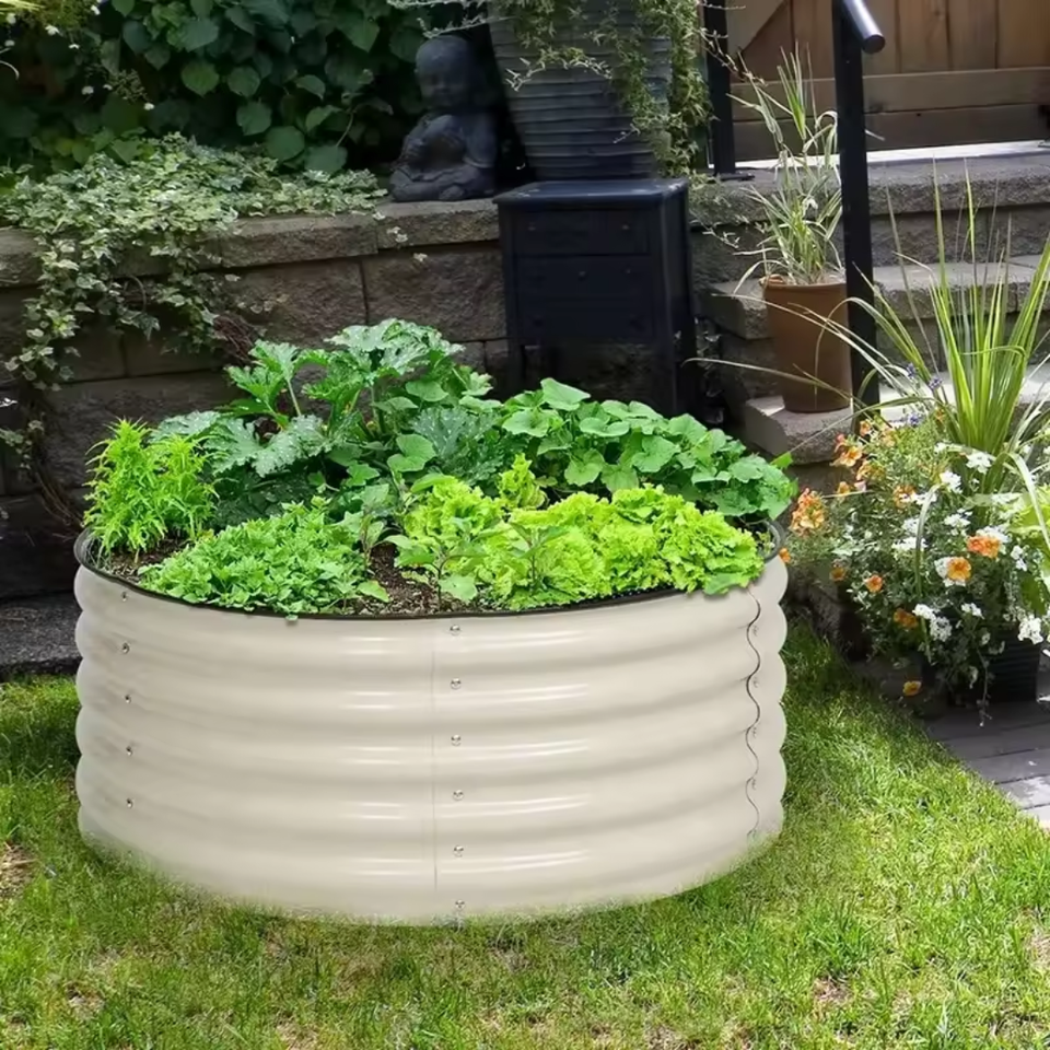 Galvanized Steel Round Shape Raised Garden Planter Bed Metal Corrugated Garden Boxes for Gardening & Home Decoration