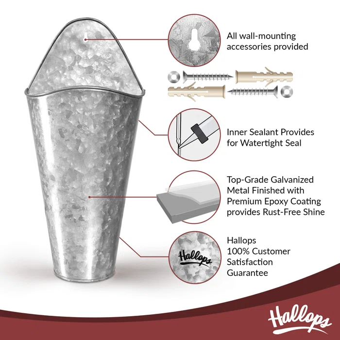 Galvanized Tall Metal Hanging Vase Decor Farmhouse Style Container Bucket for Easter Flowers Garden Wall Planter Kit Tin Style