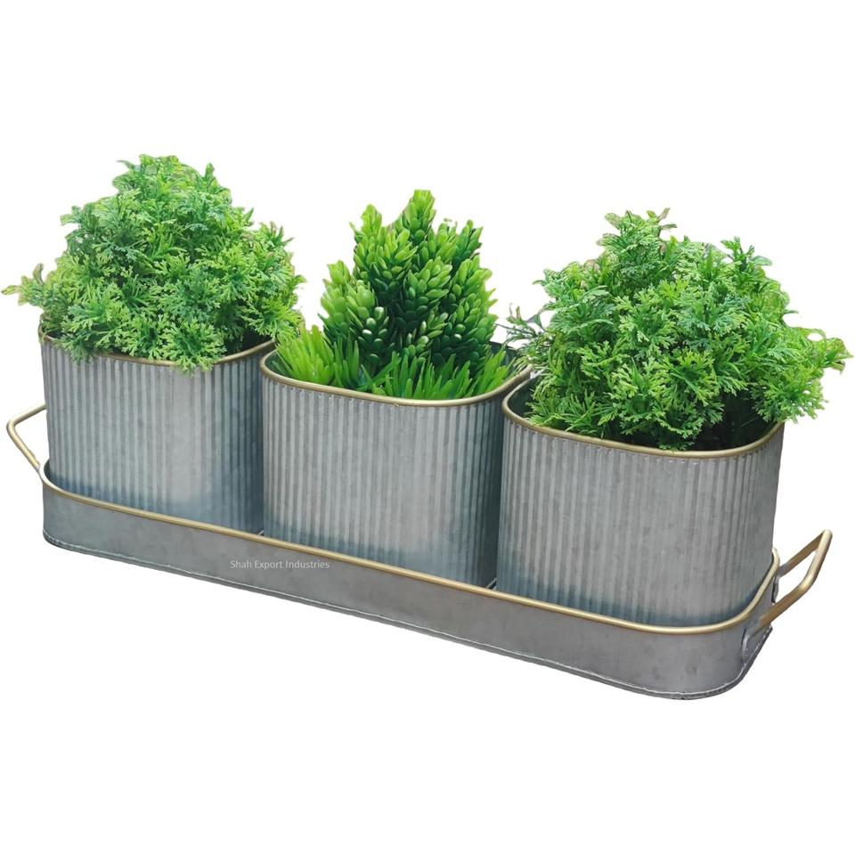 Galvanized Windowsill Garden Pots with Tray & Drainage Set of 3 Metal Window Planters for Kitchen & Outdoor Usage
