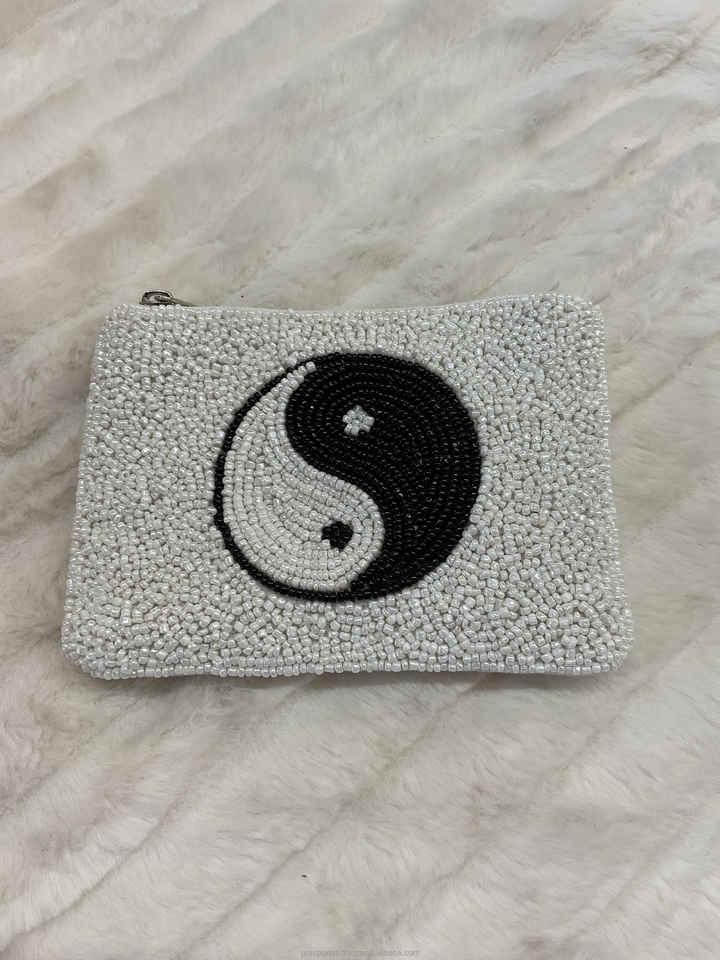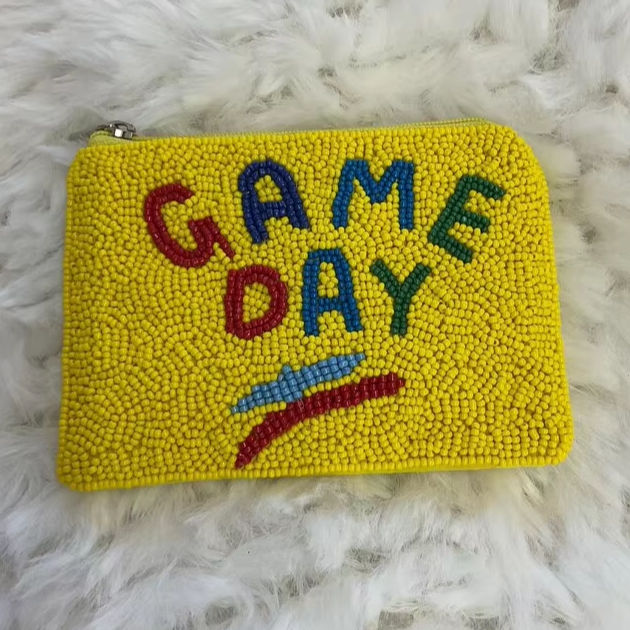 Game Day Ready Beaded Pouch Bag Yellow Handmade Clutch for Tailgate Fans Football Baseball Sport Events Coin Purse Zip Wallet