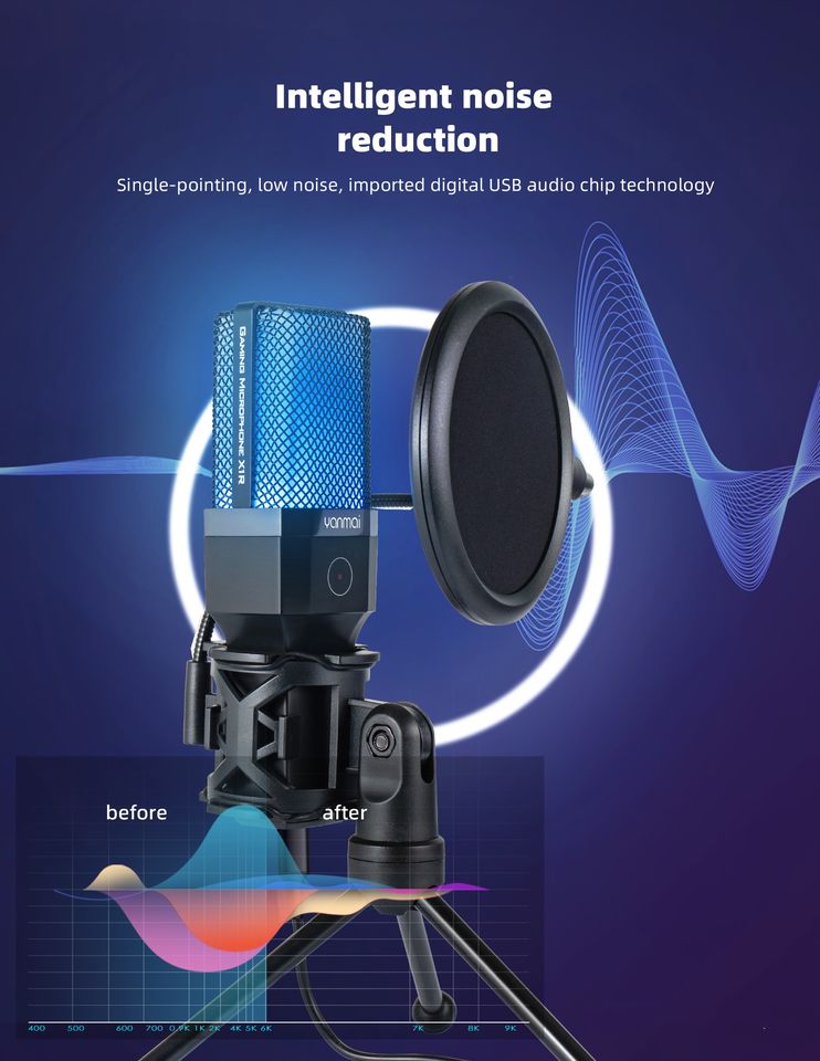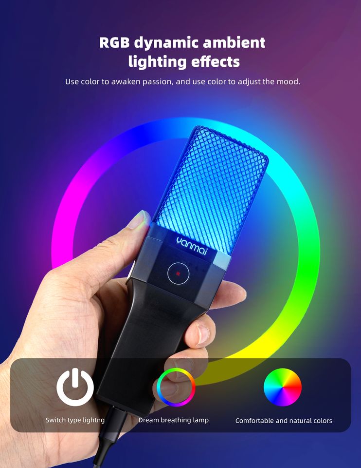 Condenser Microphone, USB Microphone, With RGB lighting, Portable, Noise CancellingFeature