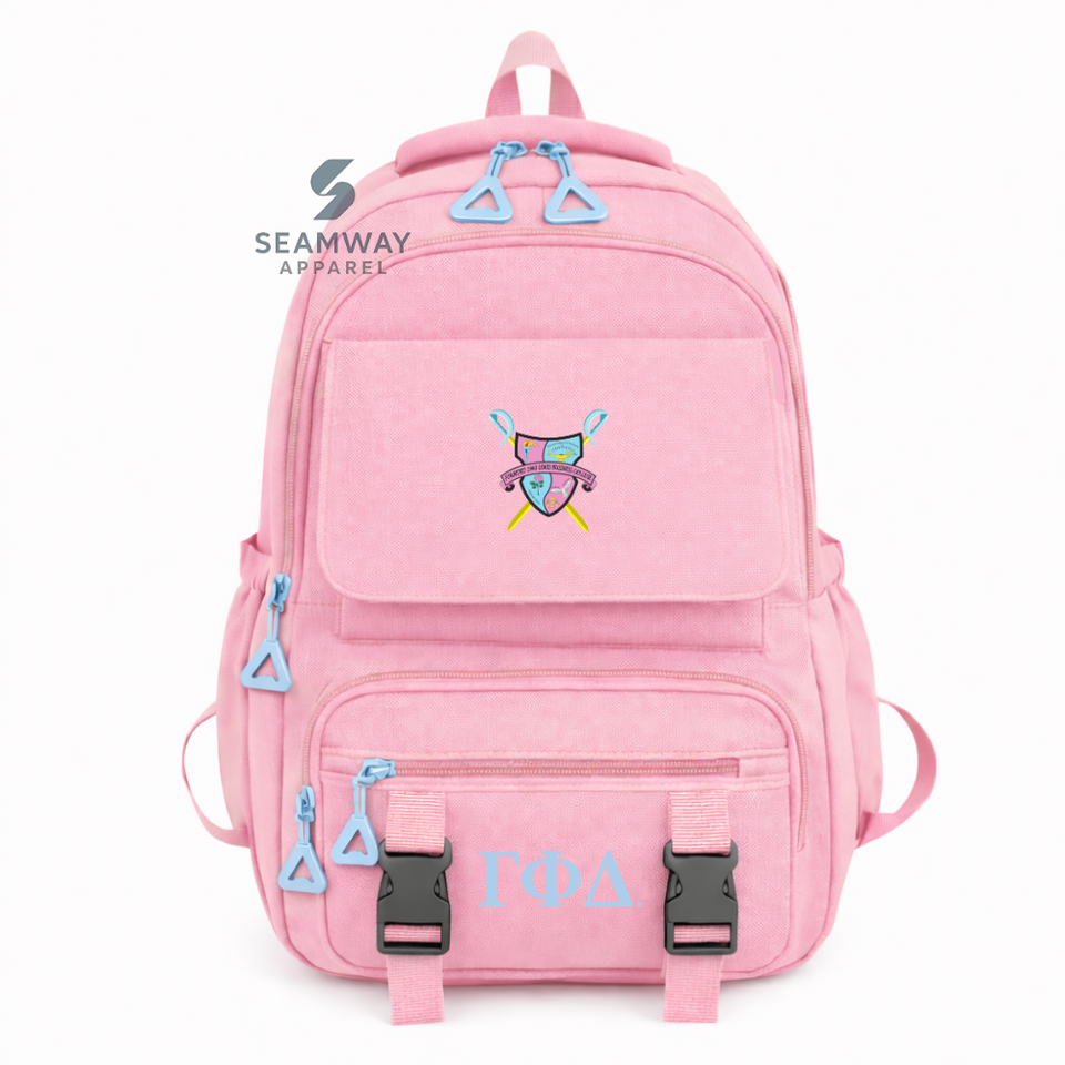 Gamma Phi Delta Sorority Backpack Stylish Bookbag Durable Cordura Rucksack Fashion Student Backpack Outdoor Hiking Daypack