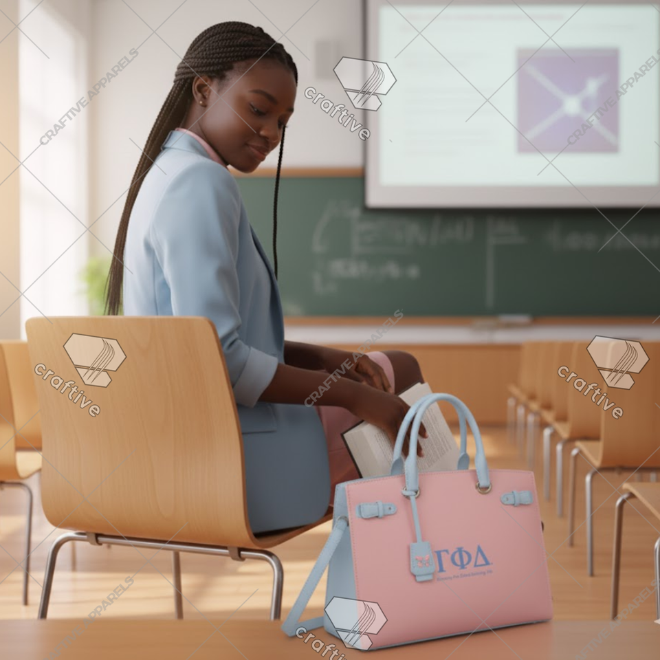 Gamma Phi Delta Tote Bag Ready To Ship Premium PU Leather Women's Briefcase Shoulder Work Bag Sorority Laptop Hand Bag