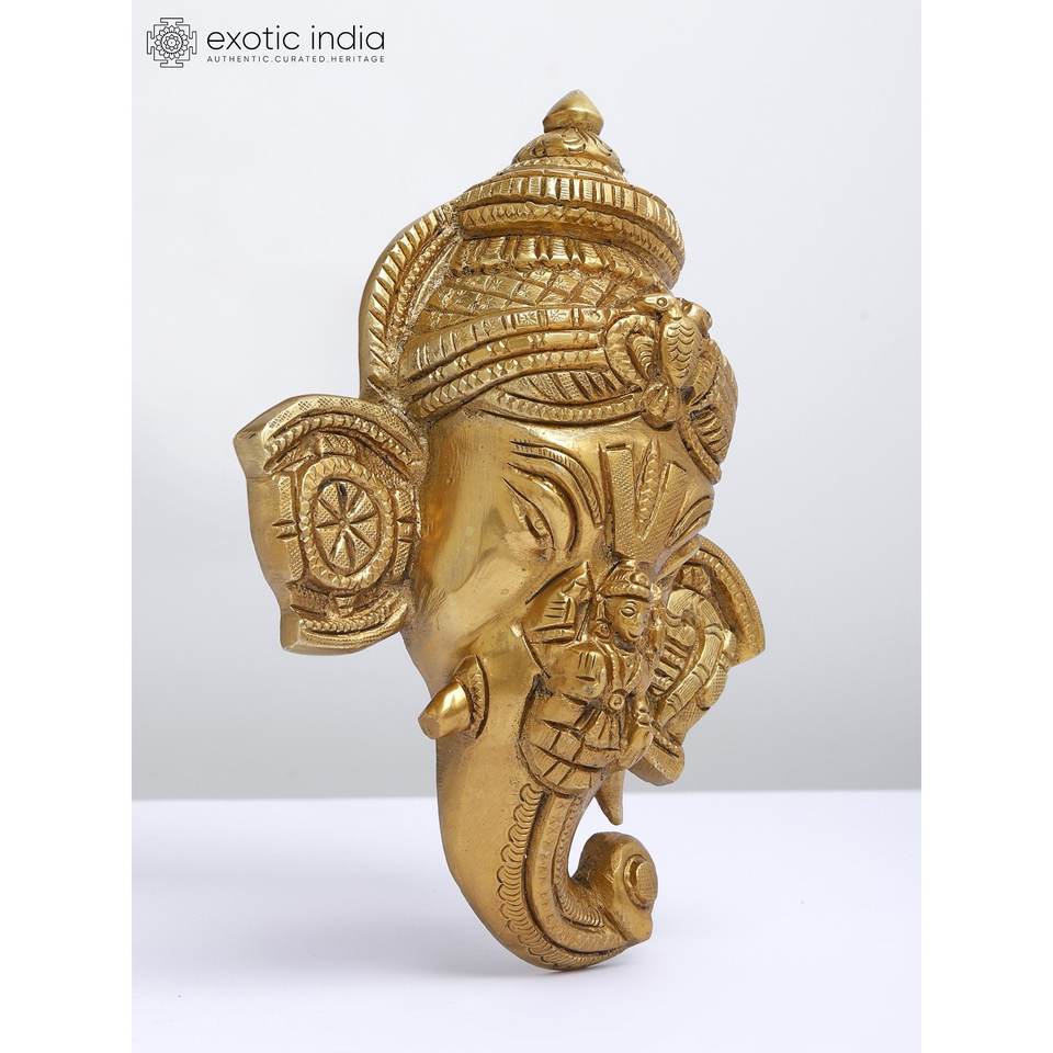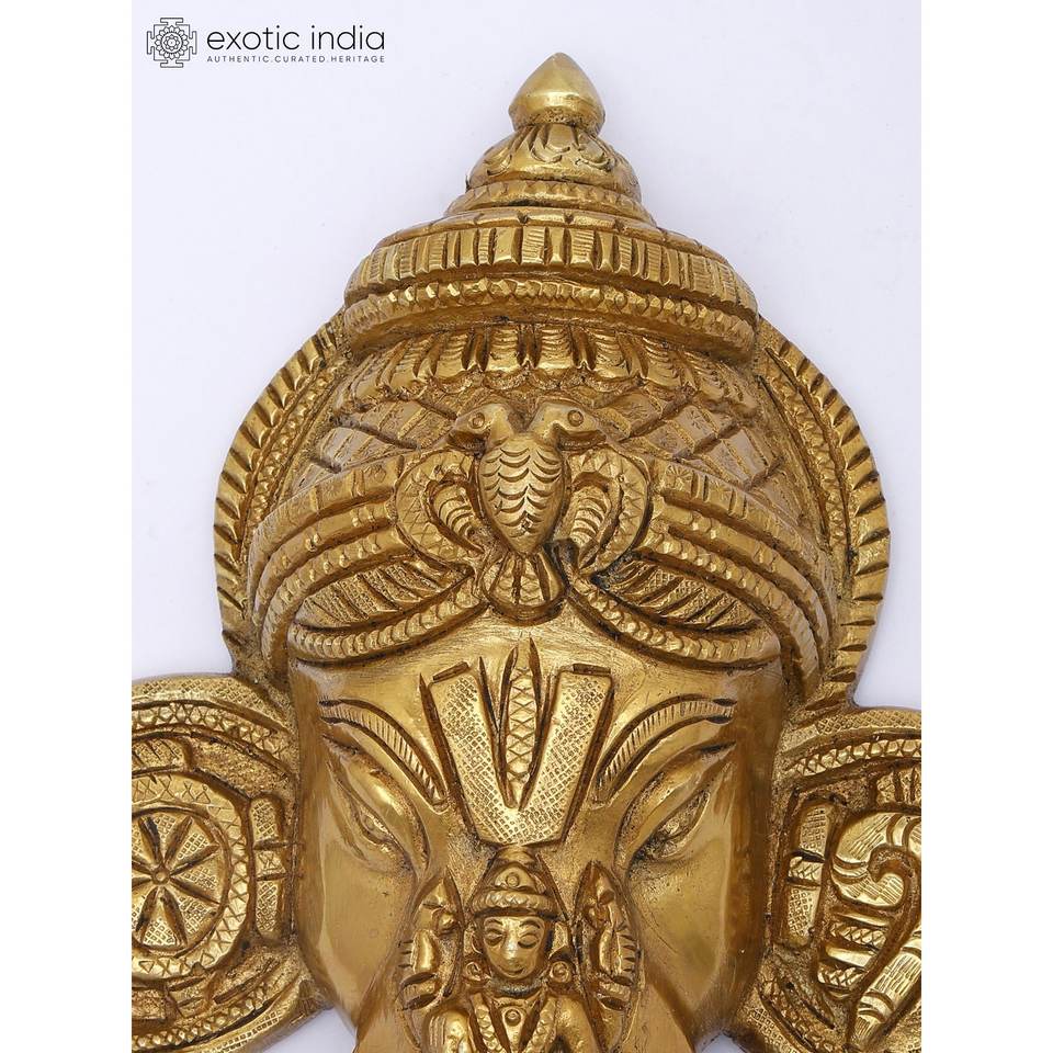 6 Inches Brass Ganesha Wall Hanging with Gandabherunda, Shankha, Chakra Symbols and Lakshmi for Home Decor and Temple