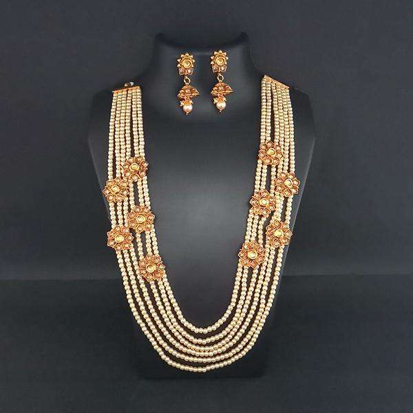 Ganpati Arts Fine Jewelry Set AD Stone Pearl White Copper Necklace for Weddings Engagement & Functions-FBC0026A
