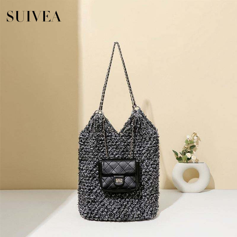 Garbage Bag in Ancient Fashion Women's Handmade Woven Bag Mesh Pocket Chain Large Capacity Lazy Wind Niche Personality Tote Bag