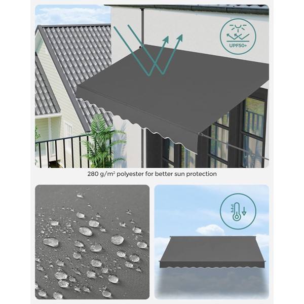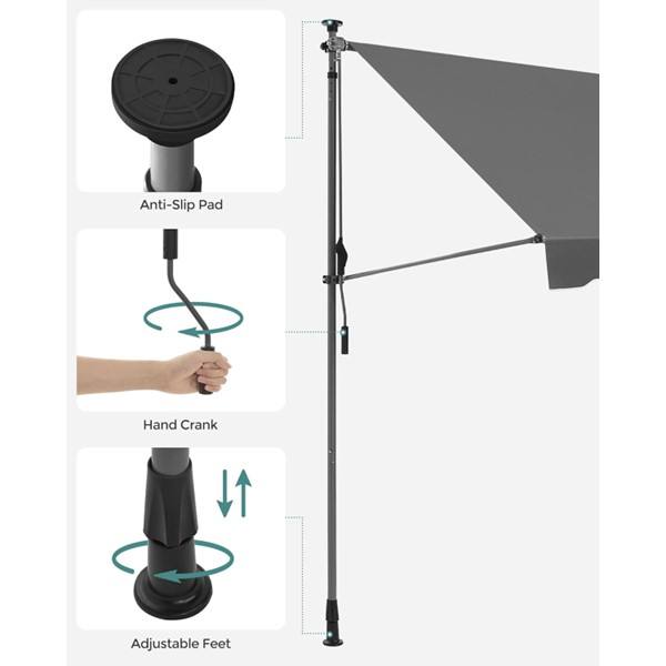 Garden Awning with Aluminum & Iron Frame and Polyester Sail 200x120cm High Quality Beige Outdoor Easy-Crank Patio Canopy