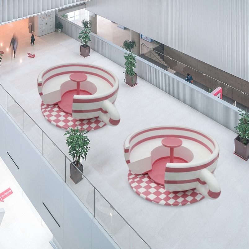 Feature:Fiberglass glass cup bench 3 seater with bench
