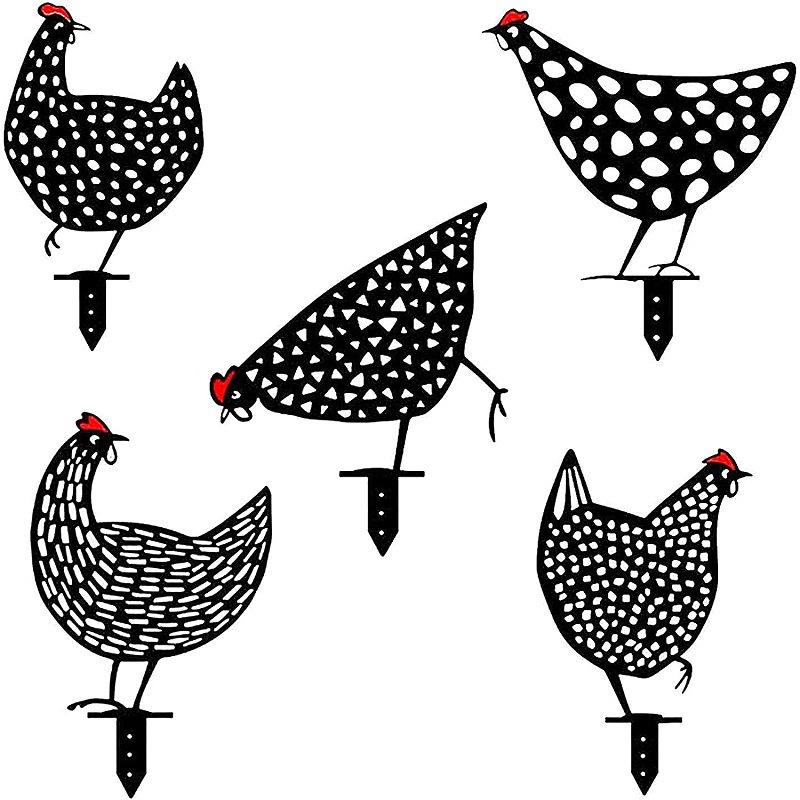 Garden Decor 5pc Set Metal Chicken With Hens Stakes Gardening Ornaments Acrylic Black Black Chicken Art Gardening Gift
