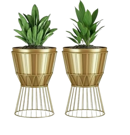 Garden Decor Outdoor Accessories Gold Finished Planter with Metallic Stand Planter Balcony Flower Planter Pot
